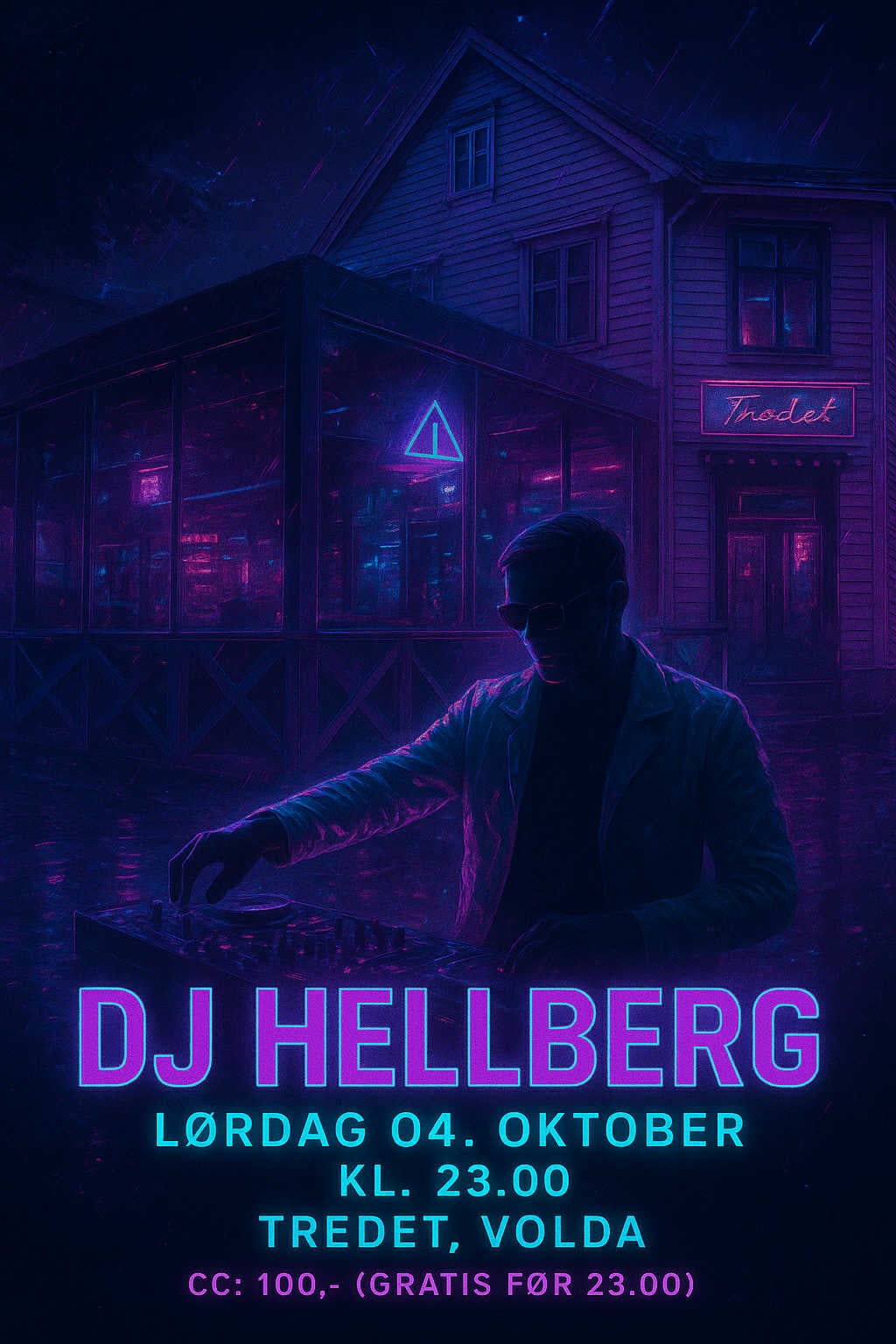 Laurdag 4. Oktober tek DJ HELLBERG turen til Volda, så då er det sjølvsagt at Tredet er plassen å vere på denne kvelden!