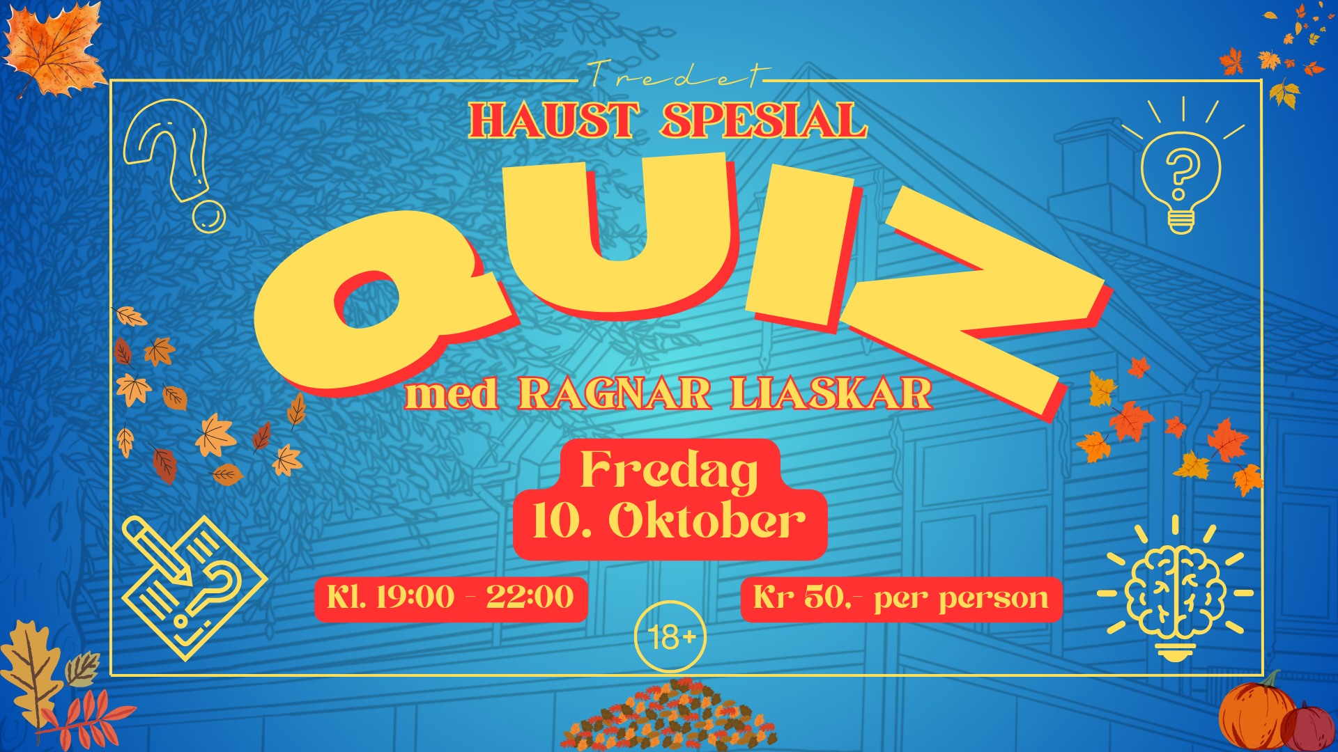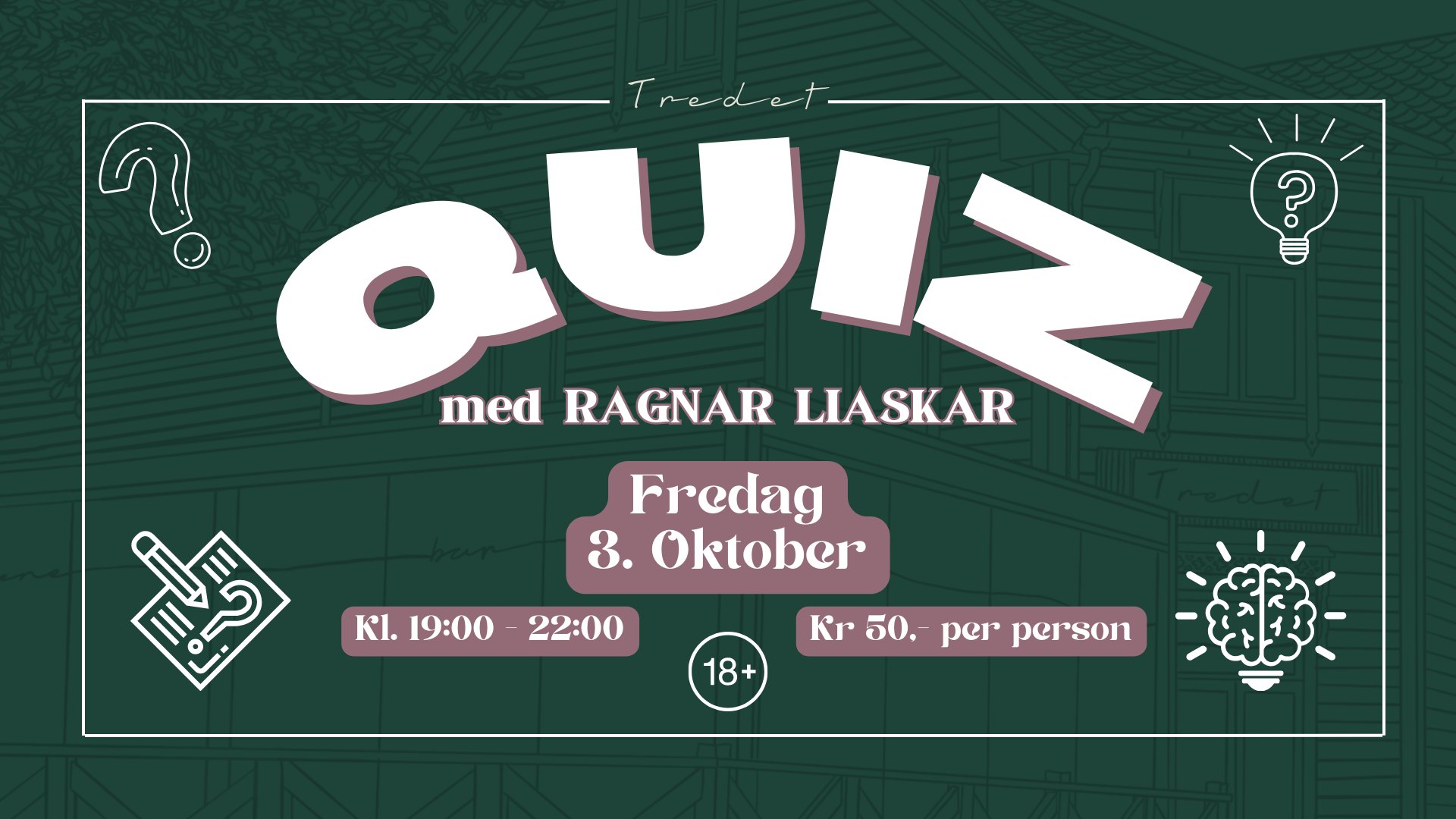 Quizmeister Ragnar er tilbake no på førstkomande fredag med ein haustferie-spesial quiz!Spre ordet, få med gjengen og ta turen innom for å teste kunnskapen mot quizmeister Ragnar!
