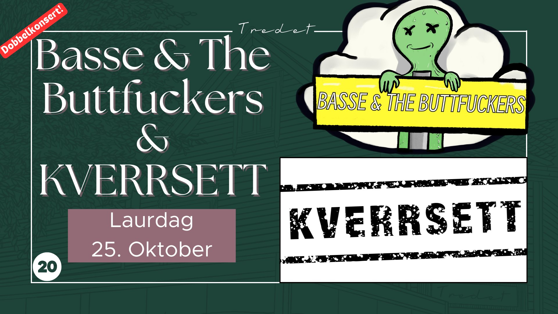 Laurdag 25. Oktober blir det dobbelkonsert med Basse & The Buttfuckers and KVERRSETT!